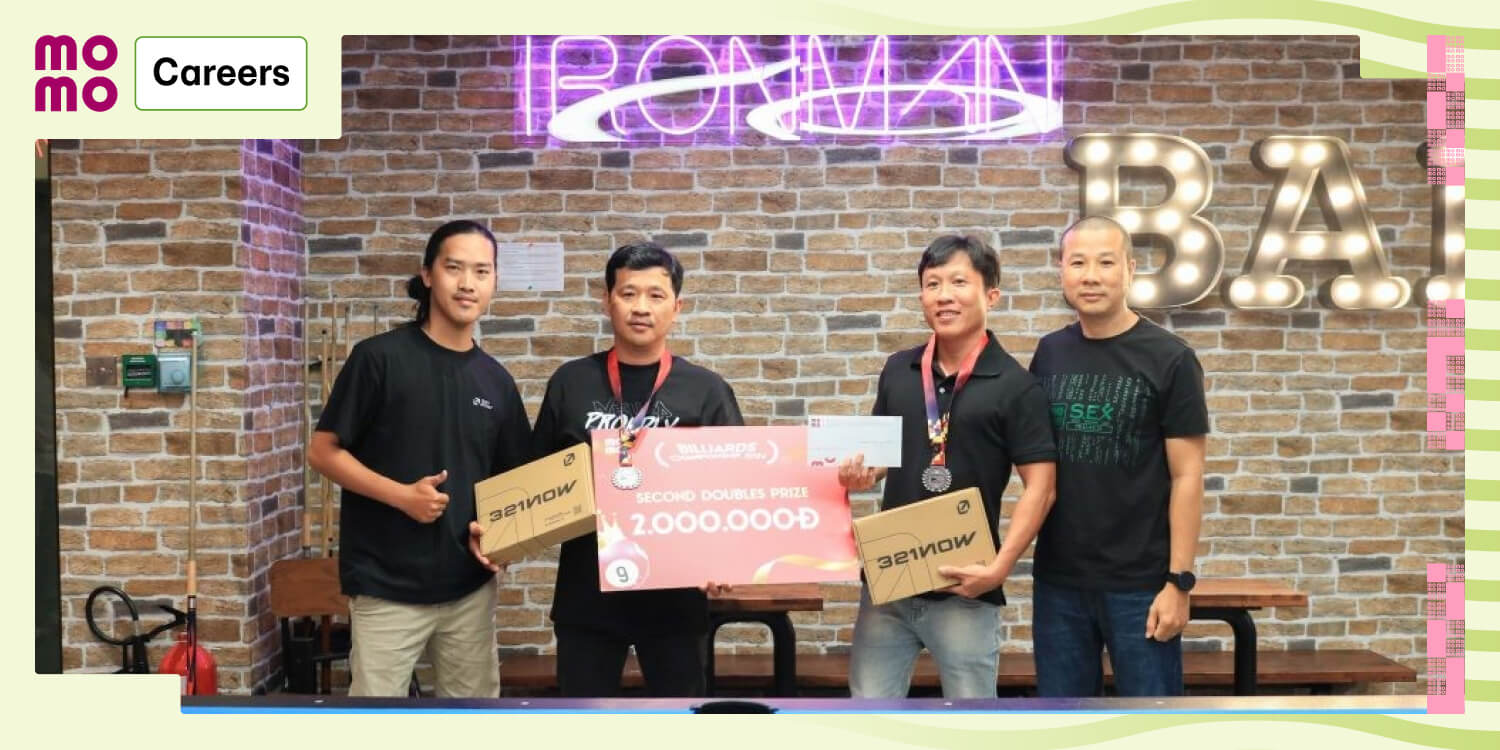 Chúng ta không quên dành lời khen ngợi cho các Á quân là Minh Toàn (Product) - hạng mục đấu đơn, và Vũ Đỗ, Nhật Bảo (Admin) - hạng mục đấu đôi. Tuy chưa may mắn với chiến thắng, nhưng những tay cơ này cũng đã cống hiến cho mùa giải rất nhiều trận đấu hấp dẫn và những đường bóng đẹp mắt. Hy vọng MoMoers đam mê bộ môn billiards vẫn sẽ tiếp tục được thấy họ trình diễn trong các sự kiện tiếp theo tại MoMo.